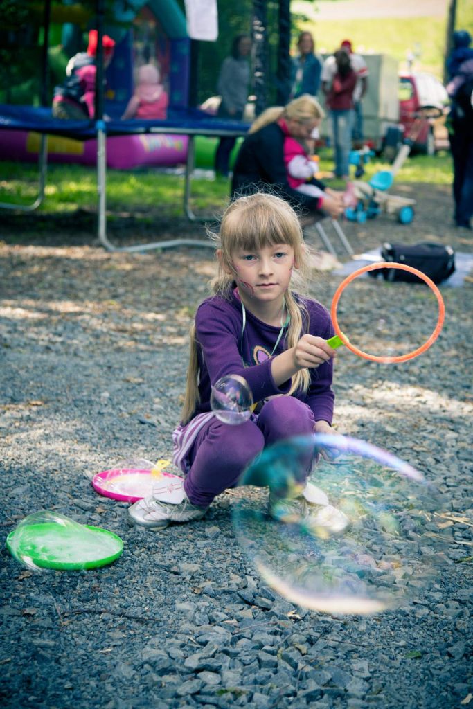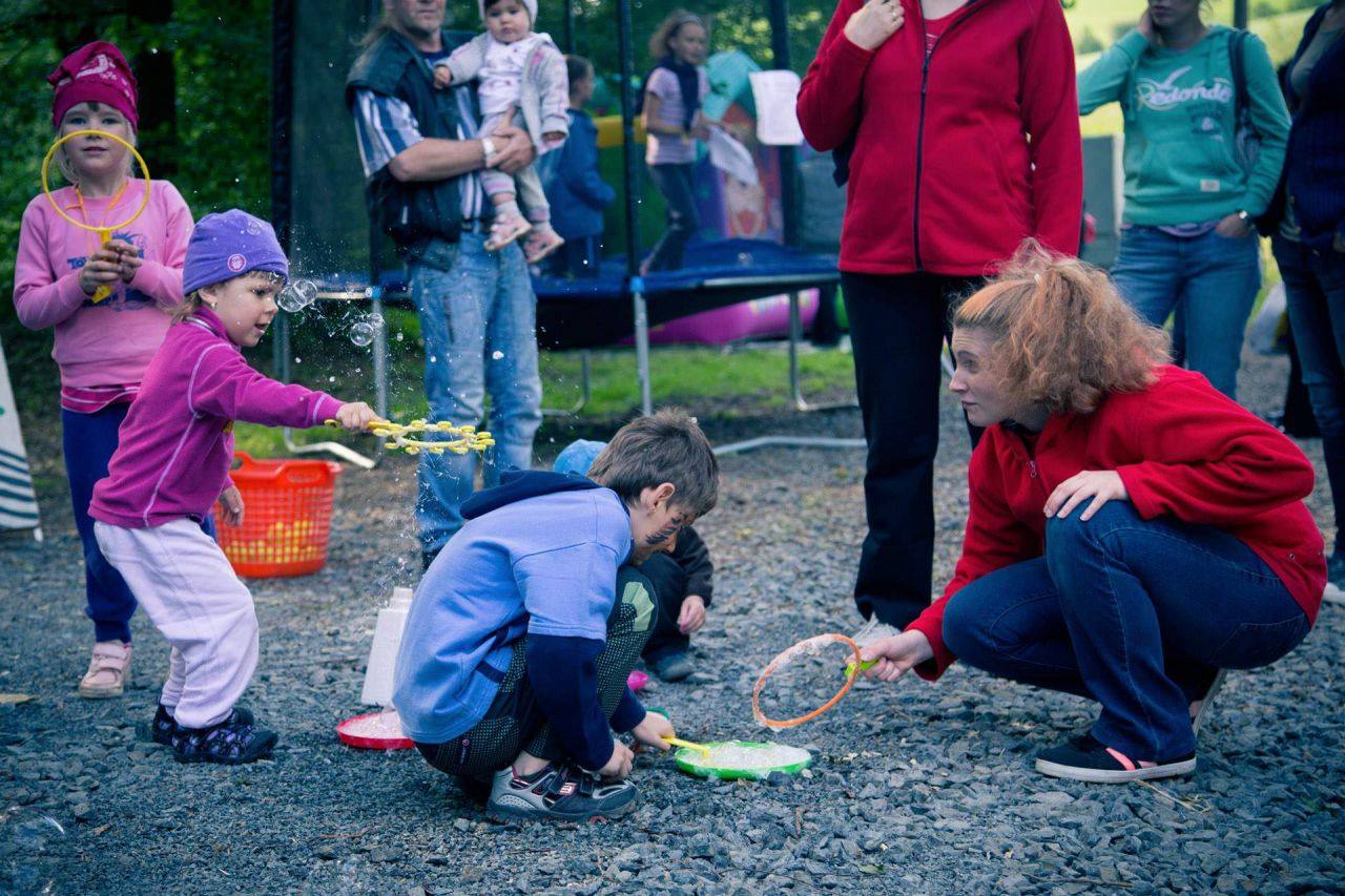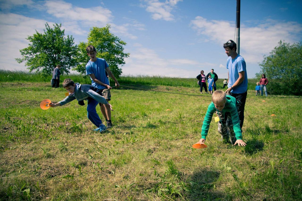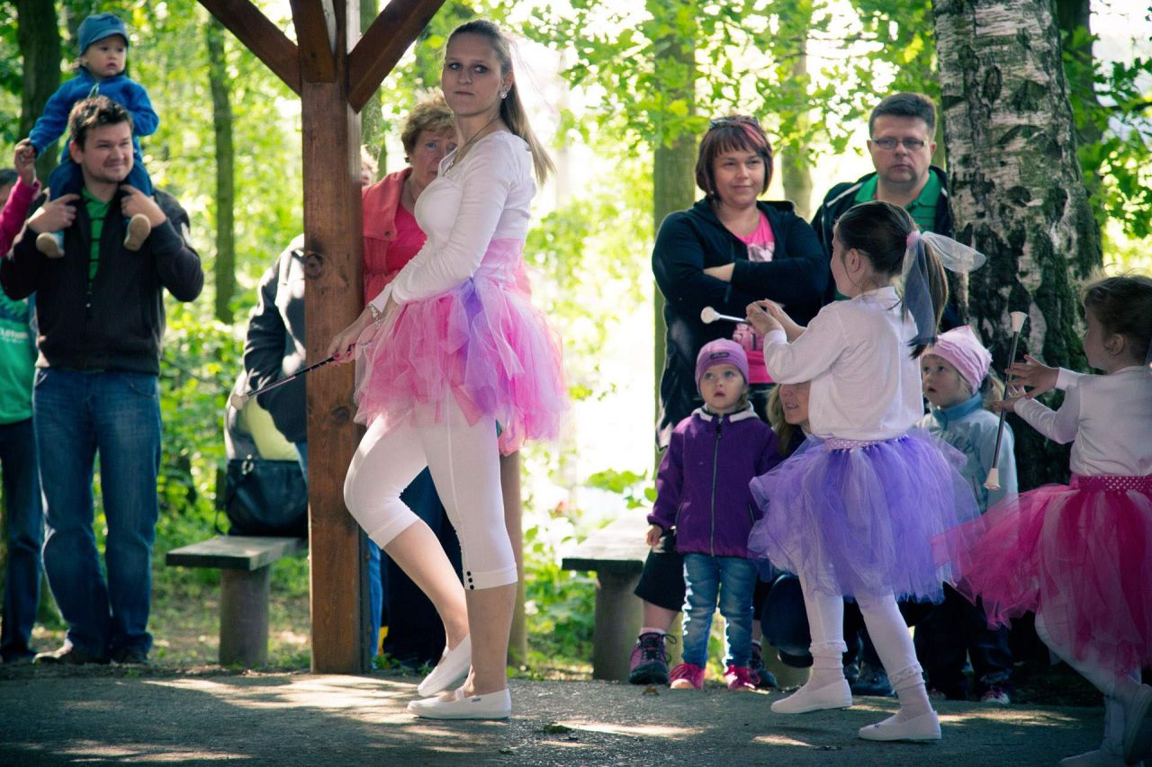 V květnu 2014 proběhlo Kácení máje na výletišti V Lípí. Foto Martin Čoček. Pro děti bylo připraveno několik stanovišť s úkoly, po jejichž splnění na ně čekaly odměny. Vyzkoušet si tak mohli běh na gumovém laně, lukostřelbu, discgolf, proplétání v lese „ringo cesta“. Pro nejmenší nechyběl skákací hrad, bublifuky. Řada dětí využila malování na obličej a s rodiči se raftech poznali zákoutí hluzovské přehrady.