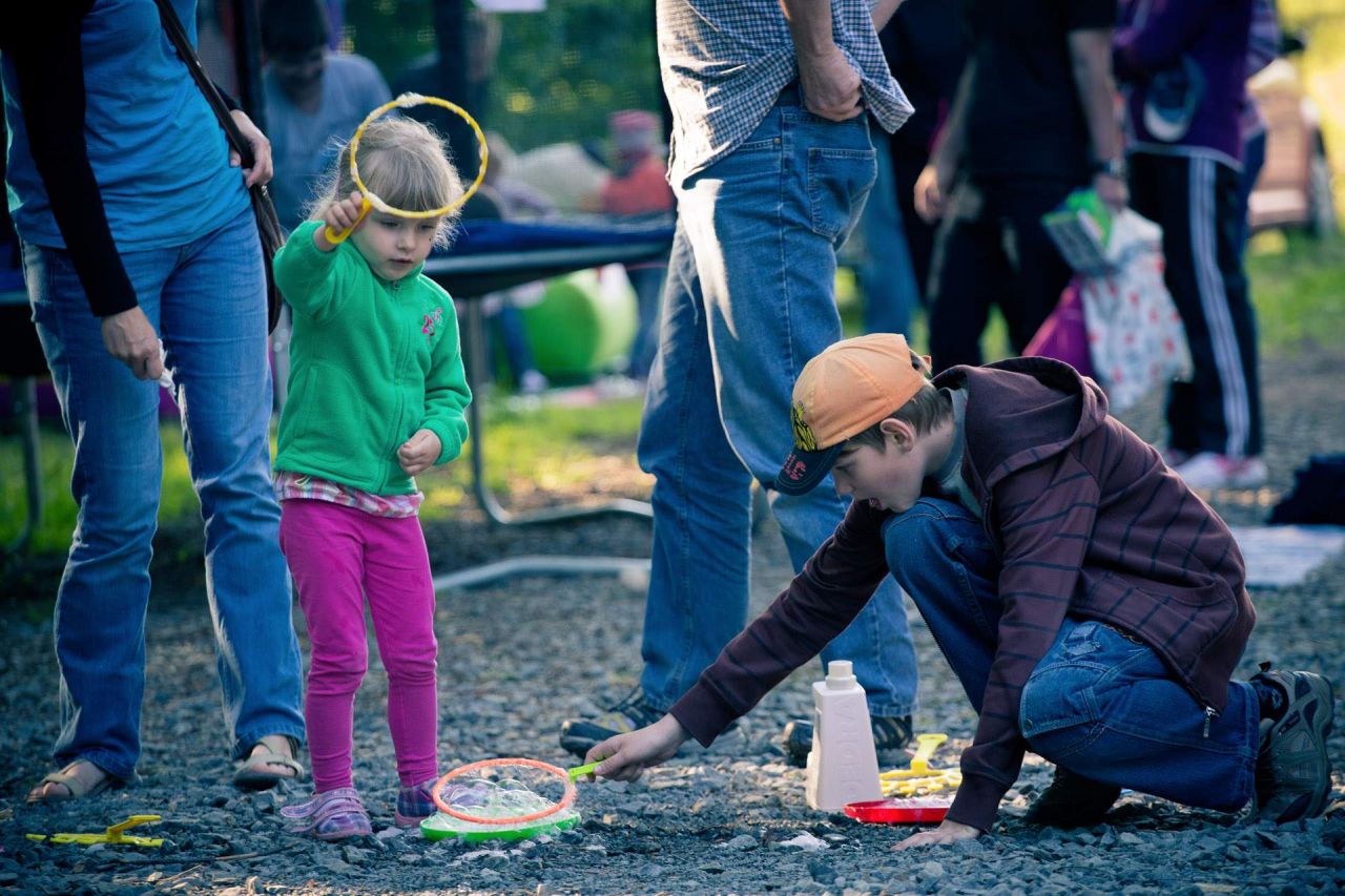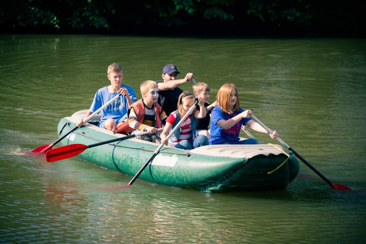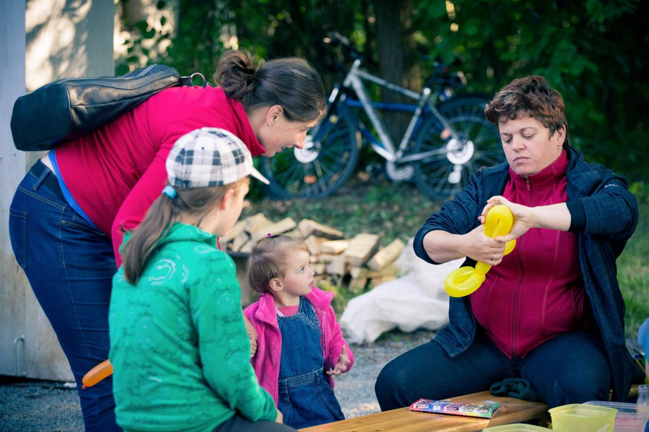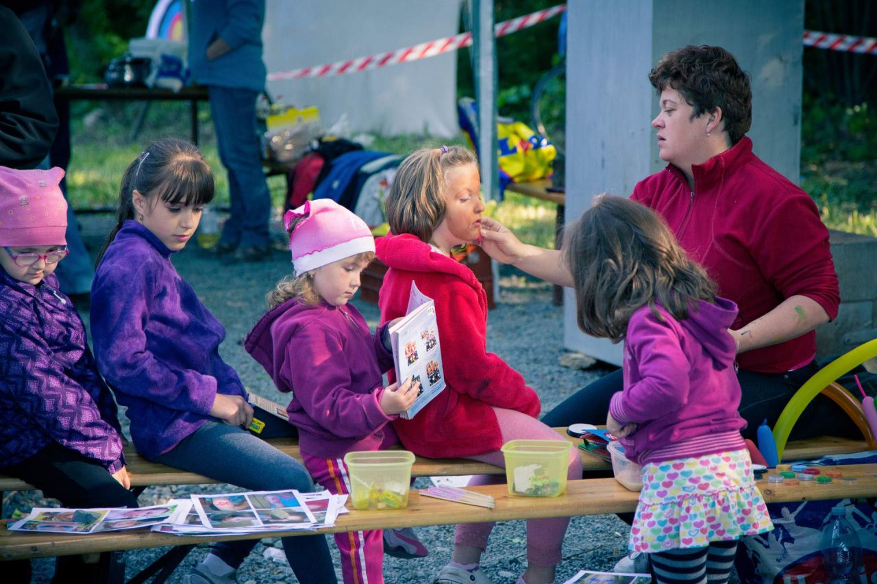 V květnu 2014 proběhlo Kácení máje na výletišti V Lípí. Foto Martin Čoček. Pro děti bylo připraveno několik stanovišť s úkoly, po jejichž splnění na ně čekaly odměny. Vyzkoušet si tak mohli běh na gumovém laně, lukostřelbu, discgolf, proplétání v lese „ringo cesta“. Pro nejmenší nechyběl skákací hrad, bublifuky. Řada dětí využila malování na obličej a s rodiči se raftech poznali zákoutí hluzovské přehrady.