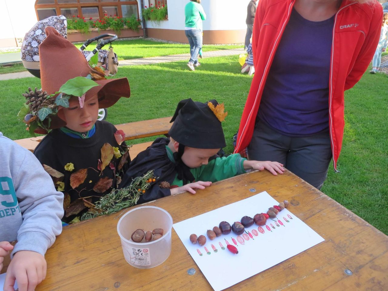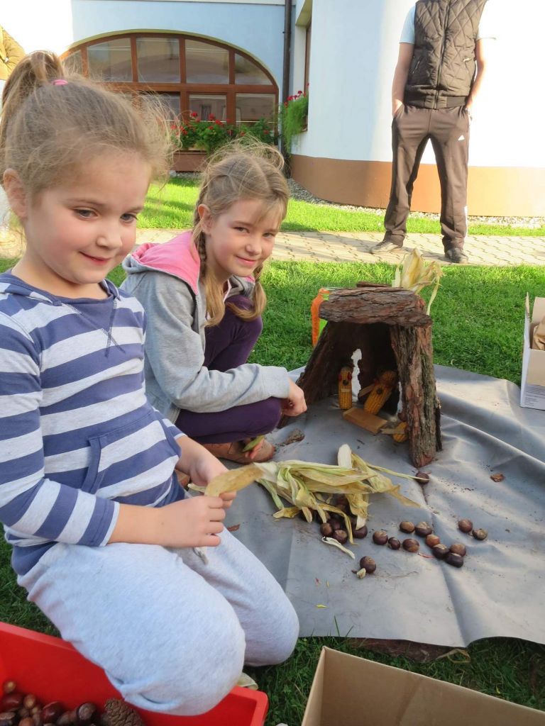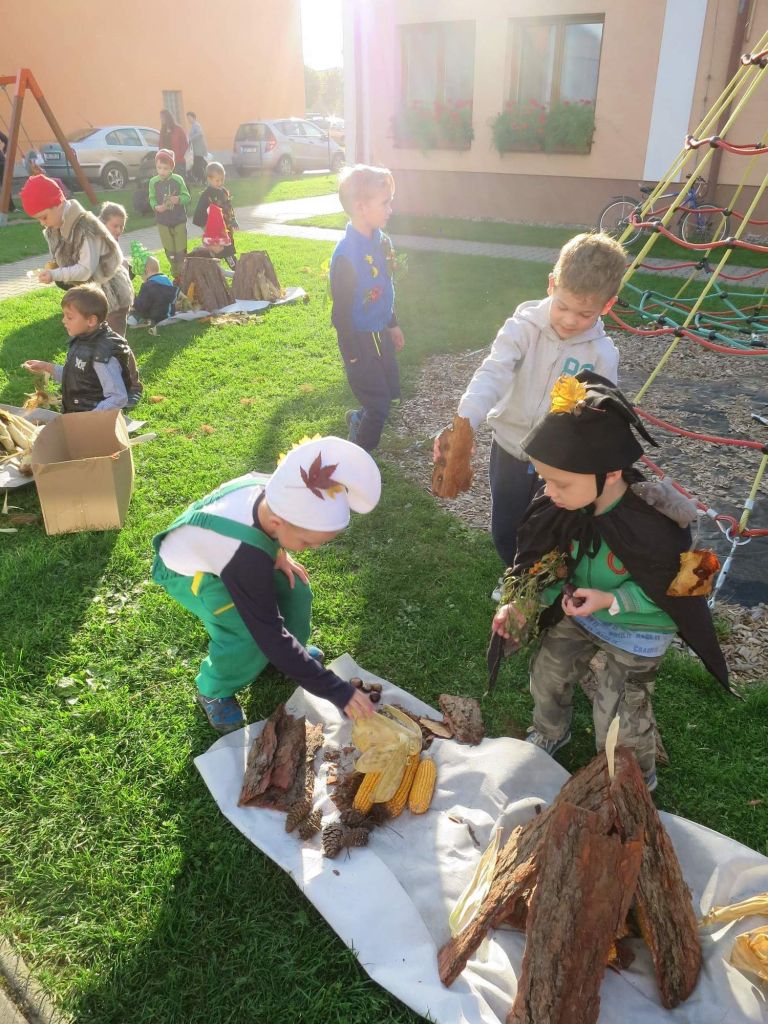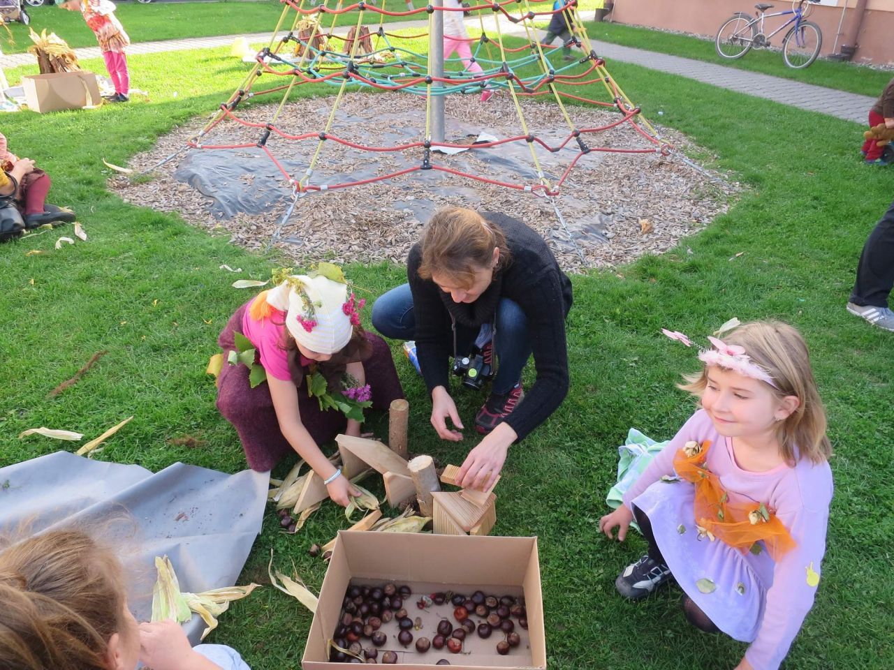 V úterý 23.10.2017 sluníčko prohřívalo zahradu v mateřské škole svými paprsky. Zahrada byla plná malých skřítků z naší školičky. Po splnění drobných úkolů stavěly domečky pro své kamarády lesní víly a skřítky z pohádek.