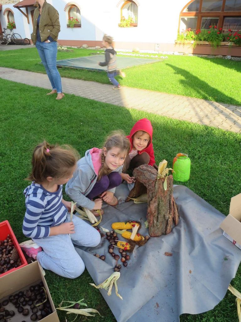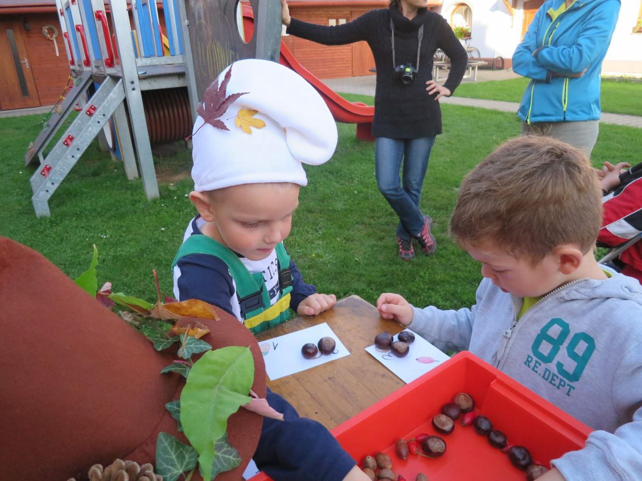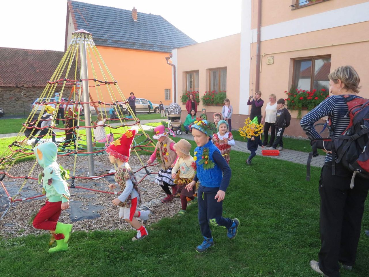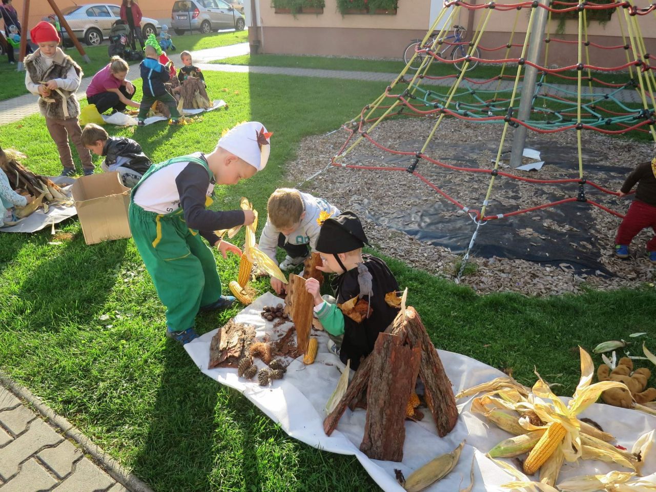 V úterý 23.10.2017 sluníčko prohřívalo zahradu v mateřské škole svými paprsky. Zahrada byla plná malých skřítků z naší školičky. Po splnění drobných úkolů stavěly domečky pro své kamarády lesní víly a skřítky z pohádek.