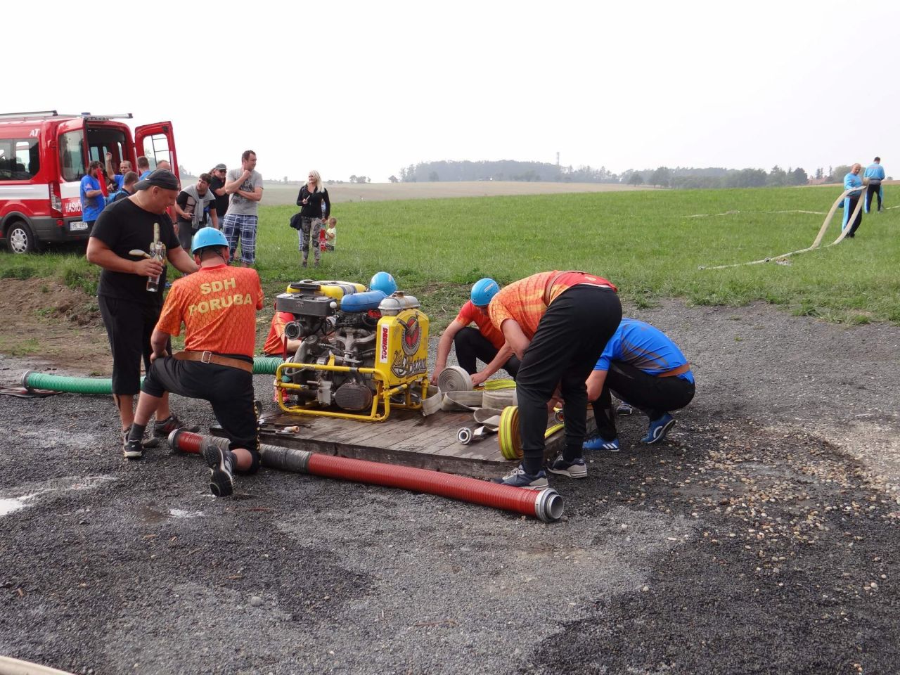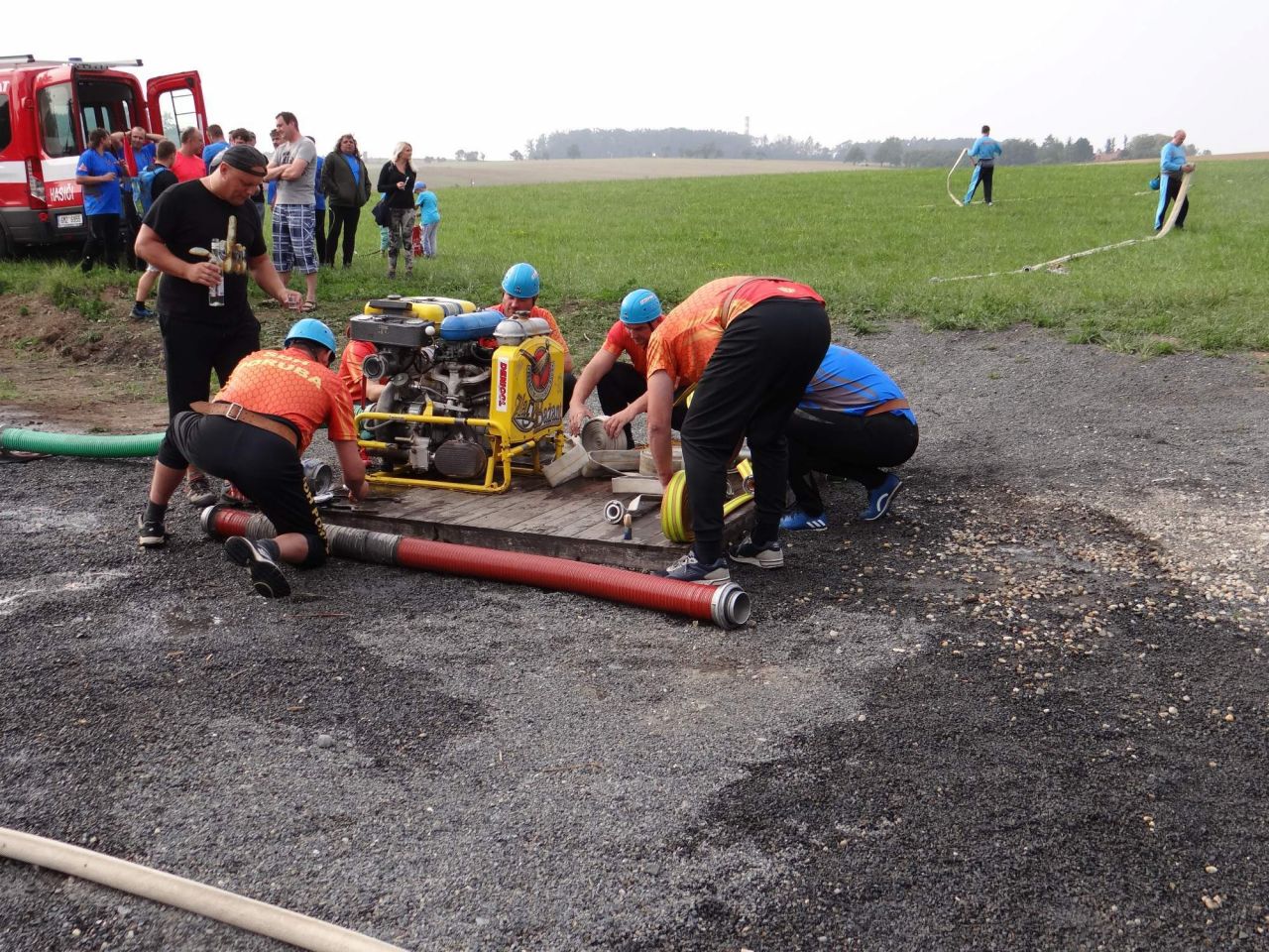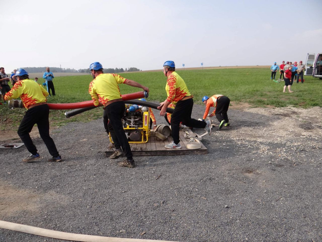 Samotného požárního závodu se zúčastnilo 5 týmů, soutěž měla spád a diváci sledovali zdařilé útoky v neobvyklém terénu. Výsledky: