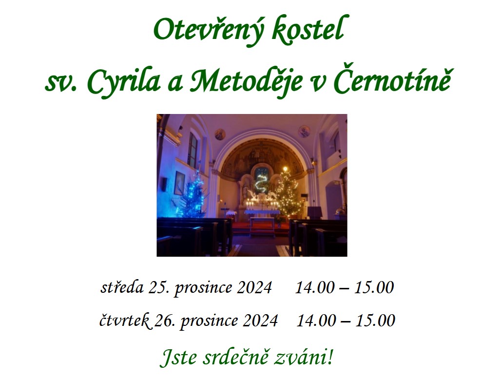 Během vánočních svátků můžete navštívit kostel i mimo vánoční bohoslužby - 25.12. a 26.12. vždy v čase od 14 do 15 hodin.