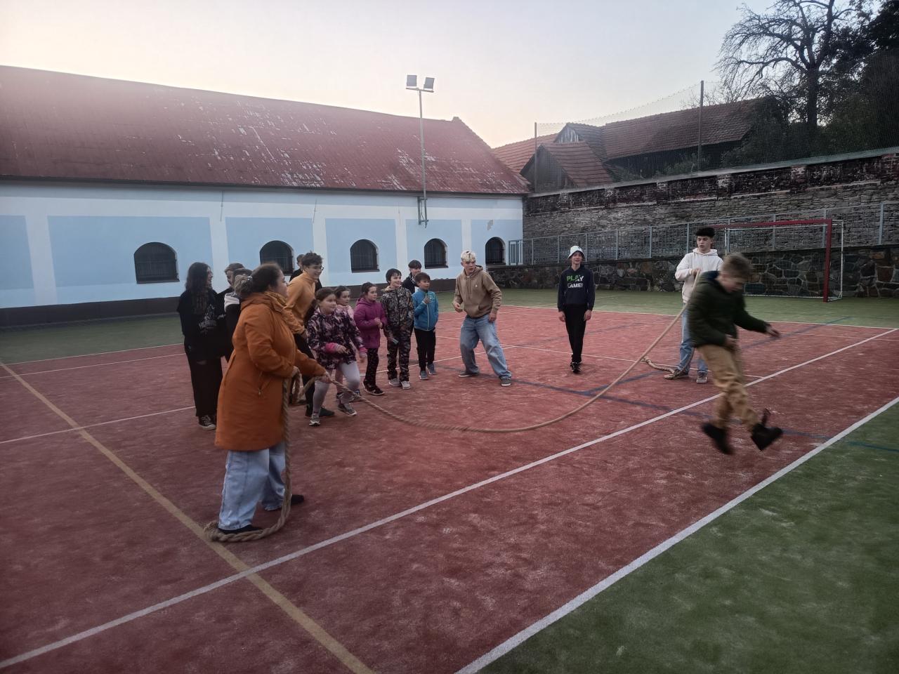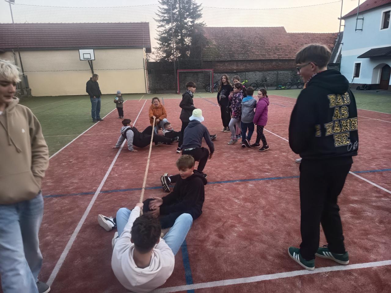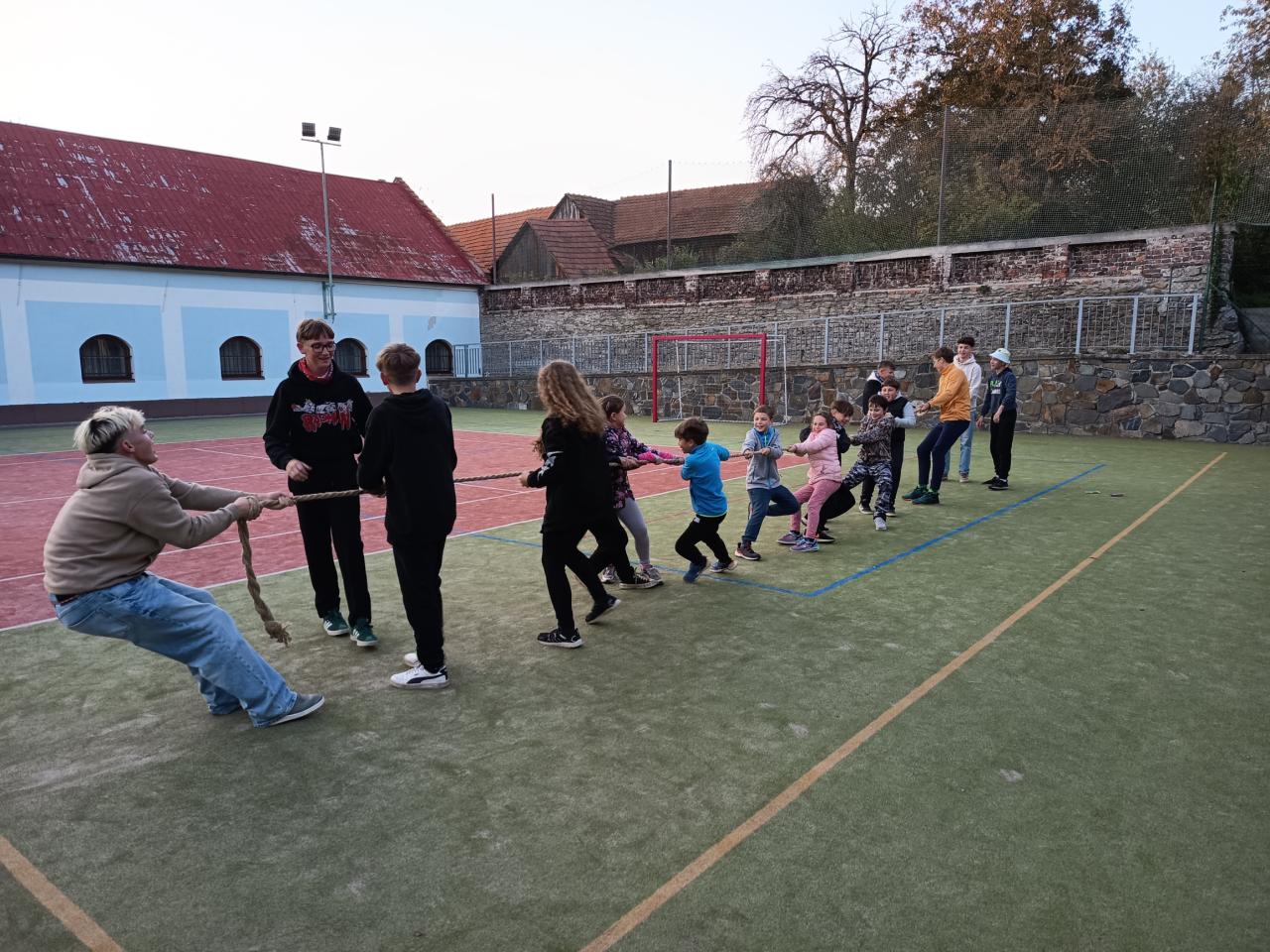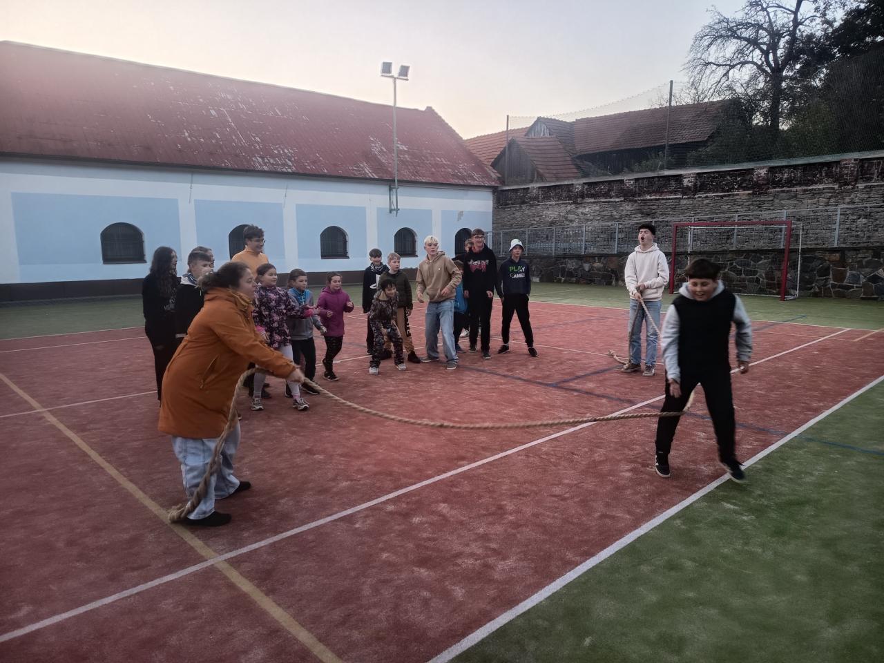 Na závěr posledního tréninku před závodem děti změřili své síly v přetahování lanem.