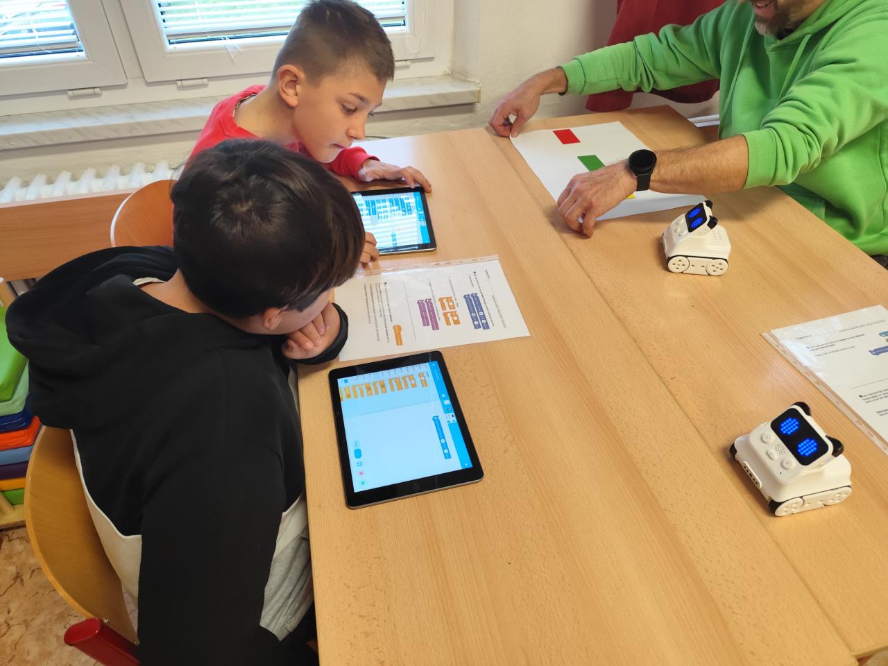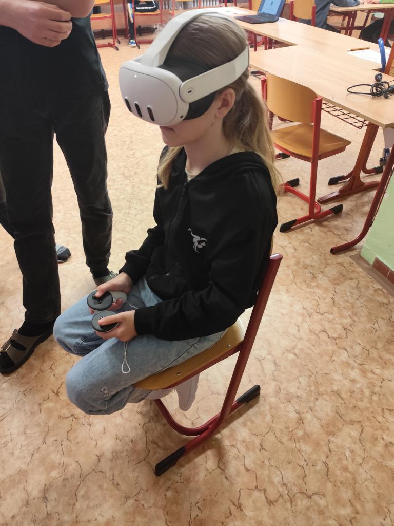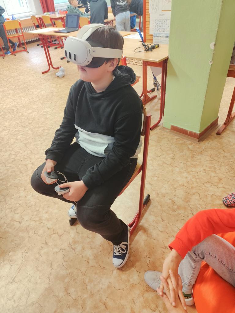 Bylo to moc fajn strávené dopoledne. Nejdříve jsme hráli hry, zkoušeli programovat a ovládat roboty, zajímavá byla virtuální realita. Pak vyřezávání z překližky - děti si vyrobily přívěsek. Viděli jsme i práci na 3D tiskárně. Následovaly pohybové aktivity v tělocvičně na příklad s obřím balónem. Vše bylo zakončeno výborným obědem.