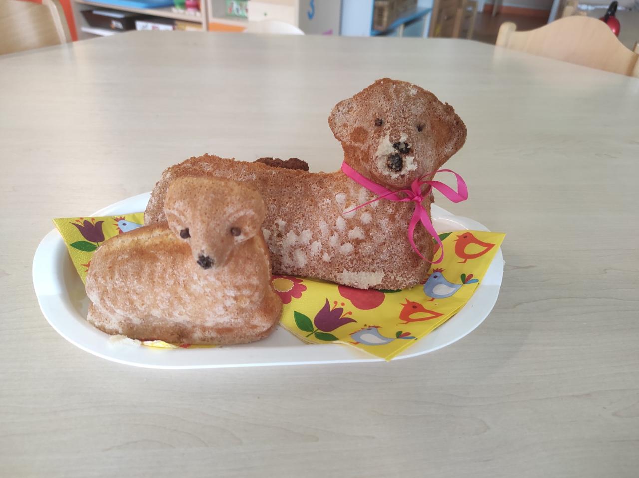 Beránek se povedl na výbornou, dozdobili jsme ho mašlí a rozinkami. Celého beránka si děti snědly v odpoledních dílničkách, které se konaly tentýž den ve školce.