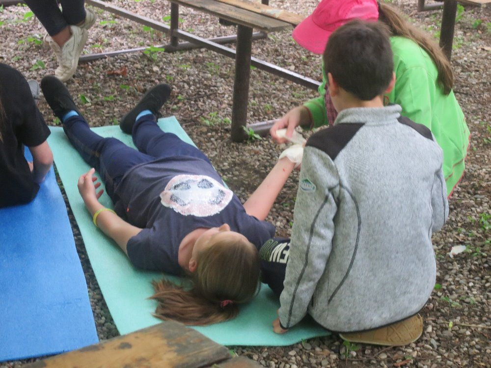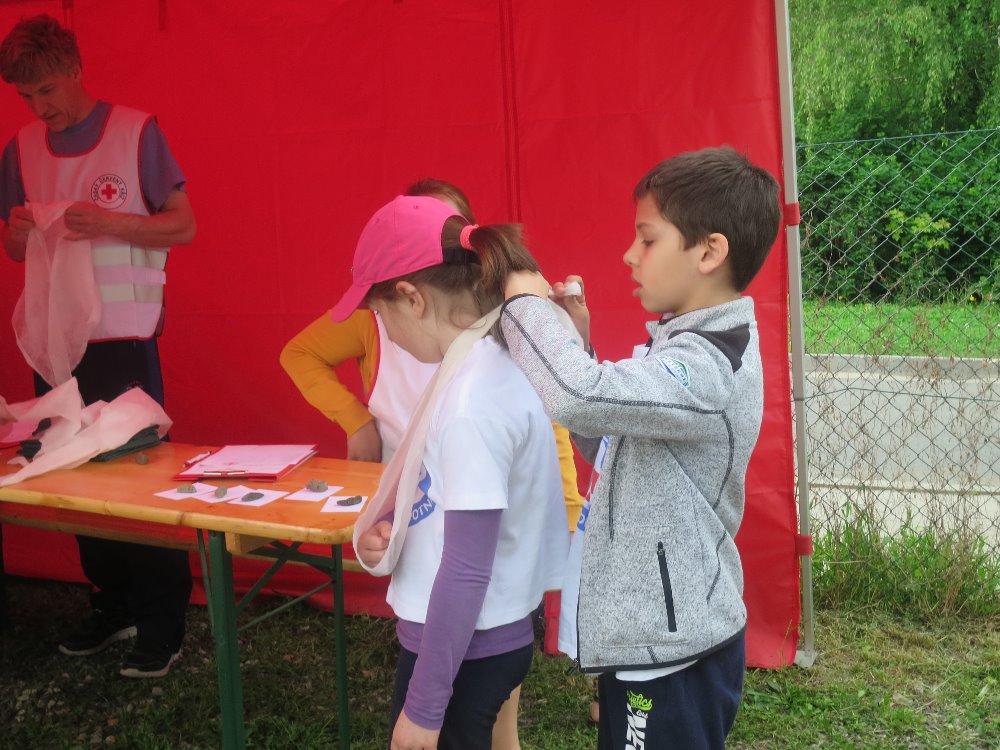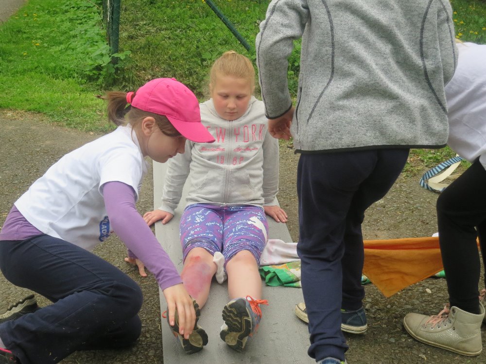 Soutěžilo se venku v parku a tak jsme byli rádi za pěkné počasí. První pomoc u zraněných jsme zvládli velmi dobře, ale jak to tak chodí, drobné chybičky se také objevily. První místo nám uteklo jen o pár bodíků, ale i tak se radujeme za krásné 2. místo.