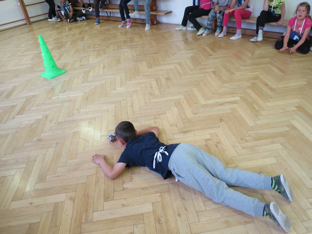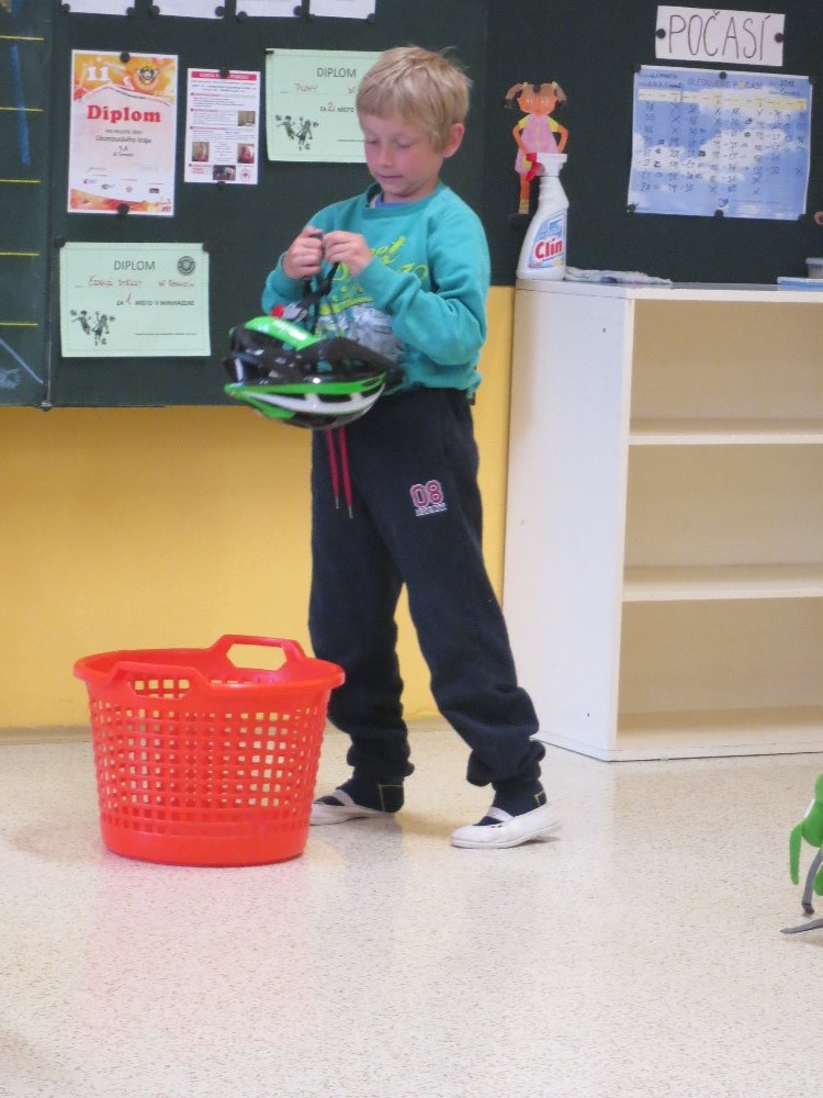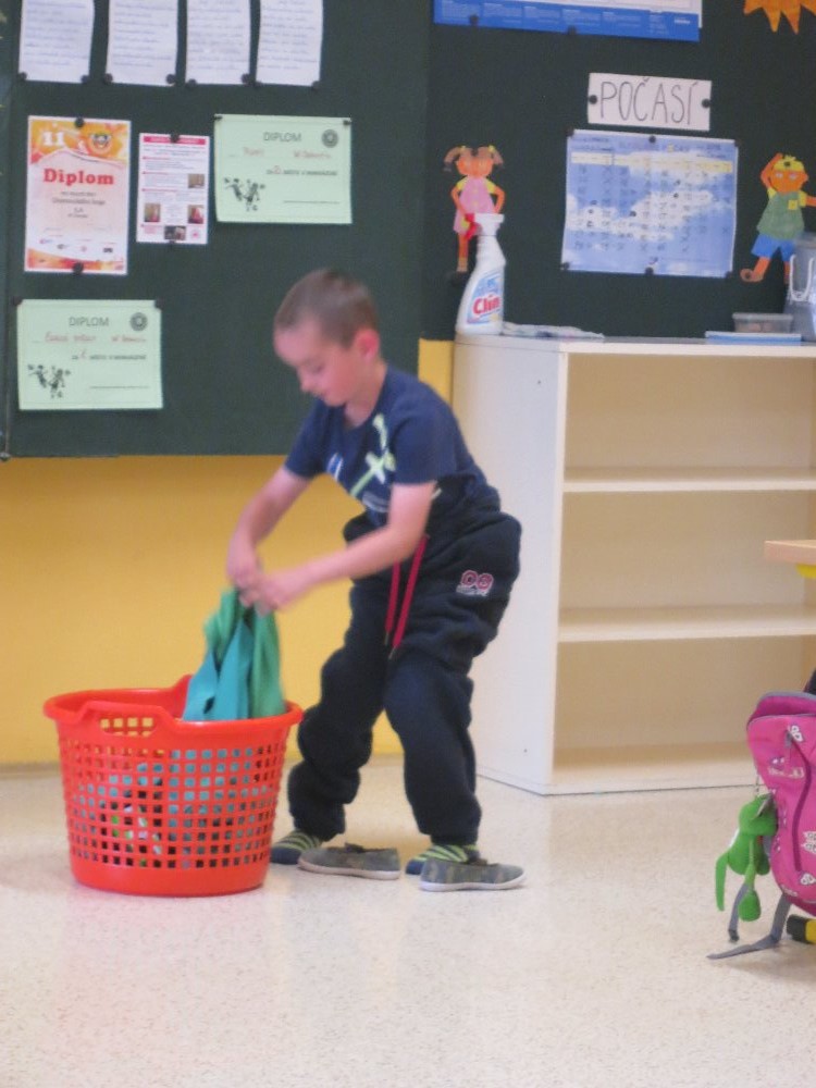 Letos nám ale počasí nepřálo, celé dopoledne bylo zamračené a deštivé. Nám to ovšem náladu nemohlo pokazit. Místo tradičních olympijský disciplín, jako je běh, hod a skok, jsme vymysleli netradiční soutěže, které jsme mohli plnit přímo ve škole. A tak děti soutěžily v běhu do schodů, ve slalomu mezi lavicemi, nejzajímavější byl oblékací závod, hod na cíl do koše a foukání do papírové koule. Všichni závodili ze všech sil a tak nám deštivé odpoledne krásně uteklo.
